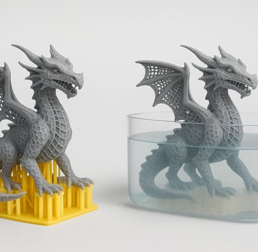 Permite imprimir diseños con voladizos imposibles, cavidades internas, puentes delicados o geometrías orgánicas.