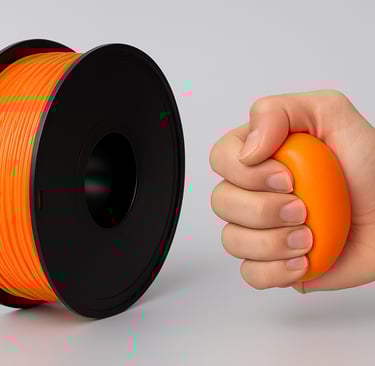 El TPE, conocido como Elastómero Termoplástico, es uno de los materiales más versátiles y especiales disponibles en la impresión 3D por extrusión. Su principal característica es que combina la elasticidad del caucho con la capacidad de procesamiento de los termoplásticos, lo que lo convierte en un material ideal para fabricar piezas flexibles, resistentes y duraderas. Aunque suele compararse con el TPU, el TPE es, en general, más blando, más elástico y más difícil de imprimir, pero también abre la puerta a aplicaciones únicas que otros filamentos no pueden igualar.